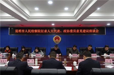 2020年12月30日,昆明市人民检察院党组副书记、副检察长绪伟一行到盘龙区人民检察院组织召开2020年征求人大代表、政协委员意见建议座谈会。盘龙区人大常委会主任汪宏昌、区政协主席陶建宇,以及区人大常委会副主任张云燕、区政协副主席赵云昆等十九名省市区人大代表、市区政协委员应邀参会;区检察院党组书记、代理检察长鞠爽主持会议。