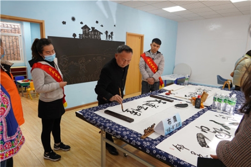 当天的揭幕活动还结合春节即将到来的实际,特别搭建了新春惠民年货市集,开展“新春送福、精准扶贫”城市社区参与民族地区精准扶贫主题活动,准备了来自省内各地的惠民年货商品,并由“嗨购民族一手货”在现场线上为民族地区直播带货。同时,活动还对50位辖区环卫工人进行了慰问,并邀请书法家为社区群众写春联、书“福”字,送出暖暖的新春祝福。