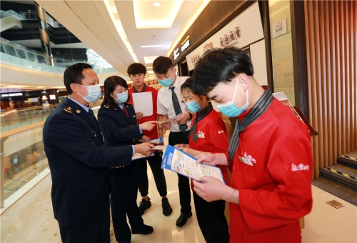 为持续强化常态化疫情防控形势下的网络订餐食品安全管理,3月24日上午,盘龙区市场监督管理局结合“净餐馆”行动联合盘龙区人民检察院及盘龙区“净餐馆”专项行动工作成员单位在同德昆明广场启动“安心盘龙,放心美食”第一期主题活动,以启用“食品安全封签”的形式,守好网络餐饮食品安全防线,推动辖区餐饮行业健康有序发展。