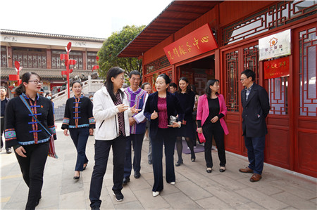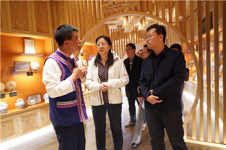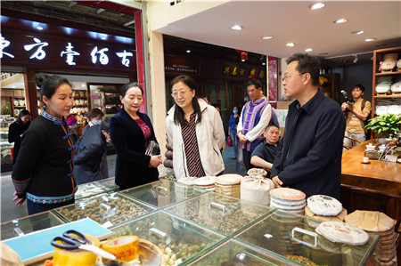 走进茶城,调研组一行便被这座充满浓郁茶文化和民族文化气息的“中国第一茶城”所深深吸引。随后,调研组一行仔细听取了雄达茶文化城妇联“党建带妇建,党群同携手”工作汇报,实地走访了“家•茶妇女微家”“茶韵妇女微家”这两个“妇女微家”,并参观了云茶历史文化博物馆,深入“巾帼示范店”与商户亲切交谈,详细了解商户经营发展等情况。