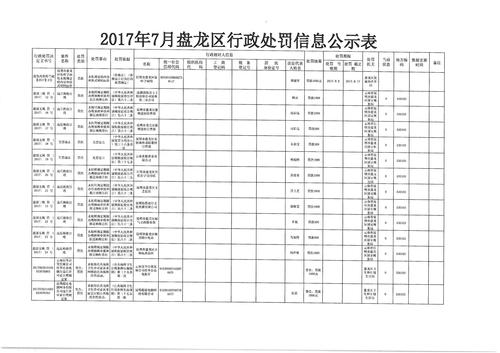 盘龙区7月行政处罚信息公示表