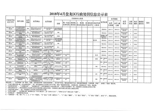 2018年4月盘龙区行政处罚信息公示表