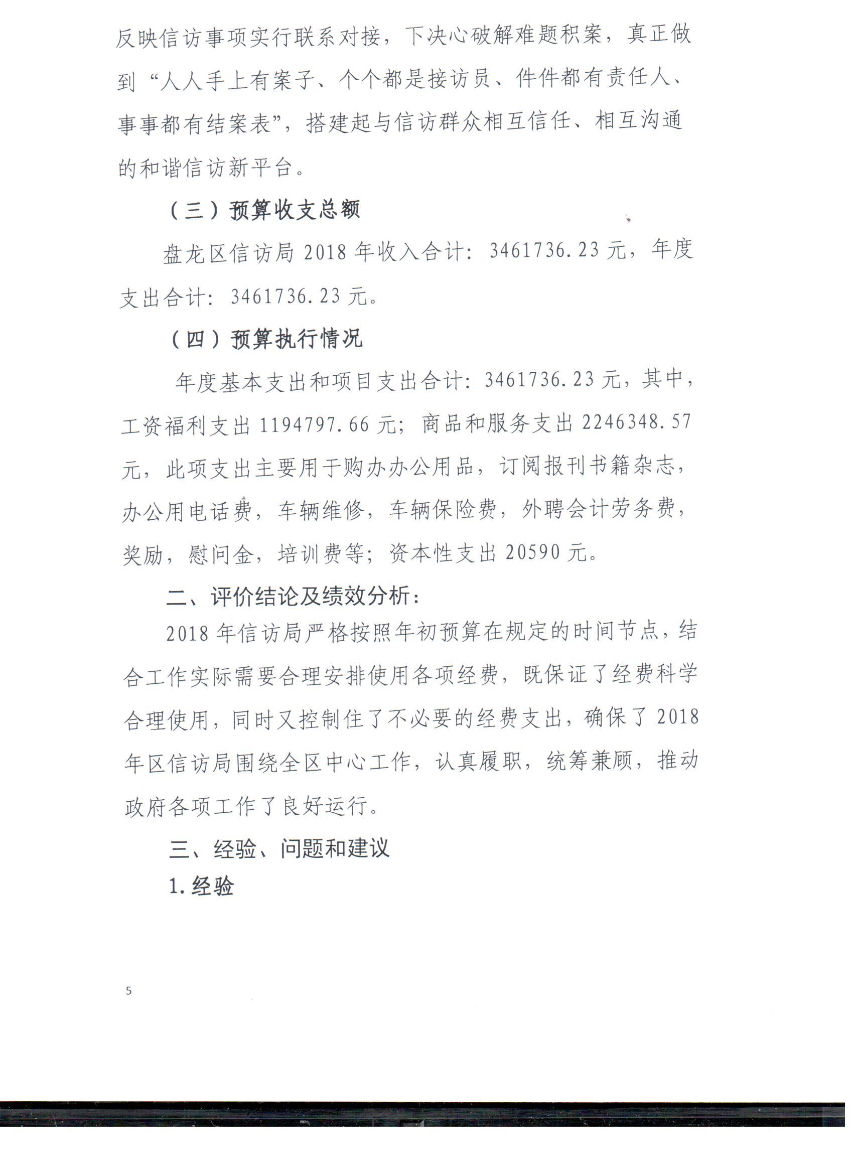 盘龙区信访局2018年部门整体支出绩效自评报告