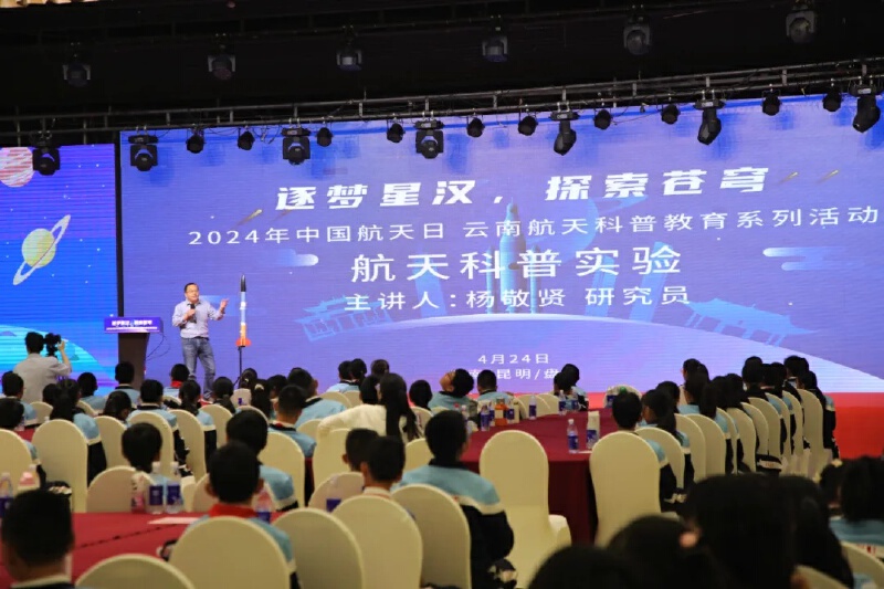 据了解,由昆明市盘龙区、中国人权发展基金科普教育基金联合开展的“逐梦星汉,探索苍穹——2024中国航天日云南航天科普教育系列活动”于4月22日至24日在昆明市盘龙区举行,系列活动通过开展院士大讲堂、航天员讲座、航天科技专家进校园等形式,向辖区民众、广大青少年普及科学知识、航天知识,共同迎接第九个“中国航天日”的到来。