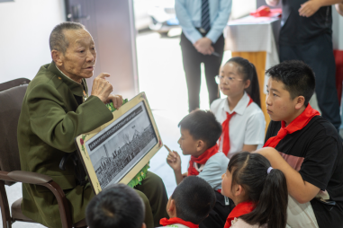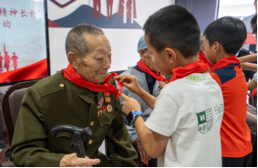有着68年党龄的老党员高锡觉以质朴的语言,深情地回忆了自己的革命经历和1959年与国家主要领导人接见他的画面。讲述了自己在战场上的英勇表现,以及与战友们并肩作战、共克时艰的感人故事。他的讲述引人入胜,让在场的每一个人都为之动容。参会小朋友走上台前,他们手捧鲜艳的红领巾,郑重地为高锡觉等5位老兵爷爷戴上。这一举动象征着革命精神的代代相传,赋予了赓续红色血脉的重要使命,也寄托了孩子们对老兵的崇敬之情和对祖国未来的美好祝愿。大家纷纷表示,要向老兵学习,发扬革命精神,为祖国的繁荣富强贡献自己的力量。