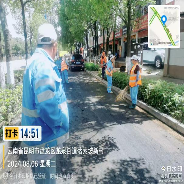 雨季期间,盘龙区降雨频繁,雨后部分路段出现了不同程度的积水,产生的淤泥、冲积物、残枝落叶等对市容环境影响颇大,同时也给市民出行带来了不便。区综合执法局督促云南京环盘宸公司以“雨”为令,快速畅通“交通线”,最大程度减轻降雨对市民出行安全和城市环境卫生的影响,尽快恢复干净整洁、安全有序的城市环境。