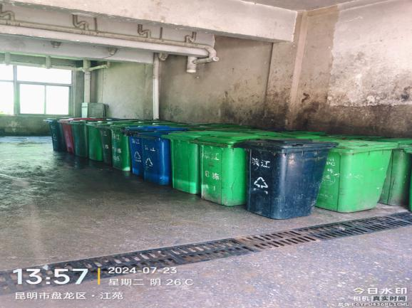 对江苑小区垃圾房清洗,并对破损垃圾桶进行全面更换(下图)