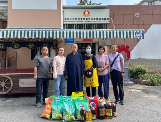 自2018年以来,盘龙区佛教协会一直关注金星社区老年幸福食堂的经营发展,持续为老年幸福食堂捐赠物资,为老年人办实事、做好事、献爱心。联盟街道金星社区老年幸福食堂在2022年4月“明厨亮灶”提升改造后,一直帮助辖区50余名独居、空巢老人解决就餐问题,着力打造金星社区老年人“舌尖上的幸福”,持续改善辖区老人生活质量,力争让更多老人共享幸福“食”光。