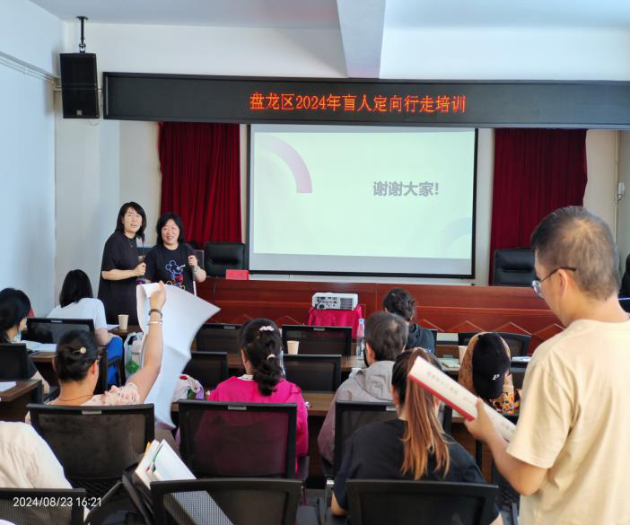 为更好普及盲人定向行走知识,帮助盘龙区视力障碍人群和家属掌握定向行走技能,让更多盲人能够顺利、安全走出家门,更好地融入社会,8月23日,盘龙区残联相关领域专业人员为盘龙区残疾人工作者集中培训盲人定向行走专业知识。