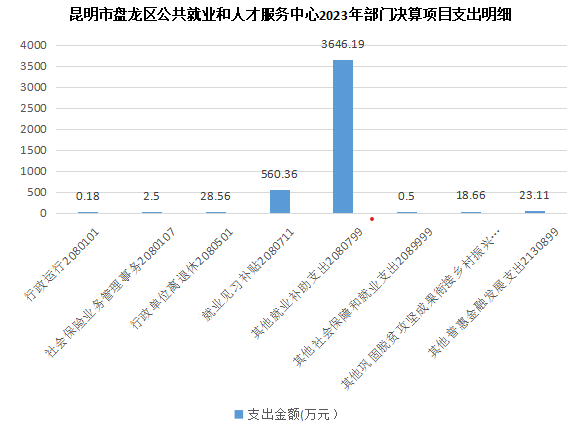 2023年度用于保障昆明市盘龙区公共就业和人才服务中心单位为完成特定的行政工作任务或事业发展目标,用于专项业务工作的经费支出4283.65万元。其中:基本建设类项目支出0万元。具体项目开支明细见下图(单位:万元)。