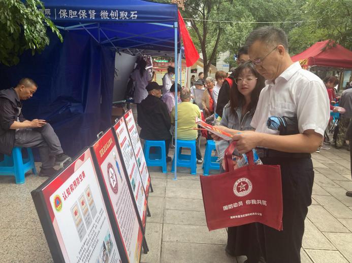 宣传活动现场,社区工作人员、退役军人志愿者向过往居民发放国防宣传小册子100余册、便携笔袋30余个及练习册、环保手提袋。同时,社区从“为什么要进行国防教育、什么是国防、国防的职能、公民的国防义务、国防教育法”等几个方面为群众进行广泛宣传,使全民增强国防意识,自觉履行国防义务,关心、支持、参与国防建设。