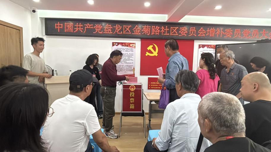 金菊路社区委员会于2025年9月10日召开全体党员大会补选党委委员4名。本次大会应到会有选举权的党员206名,因病因事请假40名,实到会有选举权的党员166名,超过应到会有选举权党员的五分之四,符合规定人数。