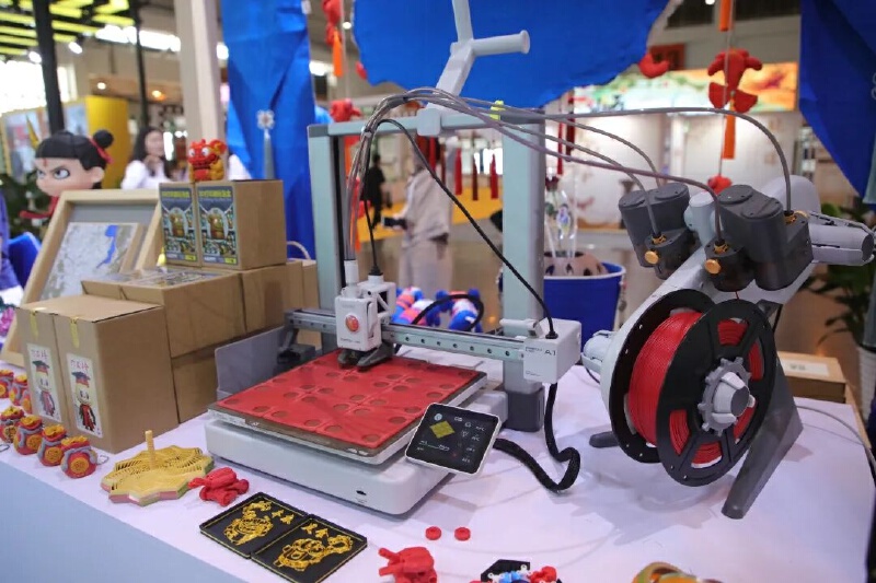 科技引领未来,在盘龙展区最具科技感的核心板块,让观众得以身临其境体验“穿越”自然、“玩转”虚拟。踏入星樾传媒展区现场,步入XR影像体验区,映入眼帘的是无影绿棚拍摄区,工作人员正通过实时抠像与光学追踪技术,将真实人物“放进”虚拟场景。坐上体验椅,瞬间便沉浸于屏幕中的虚拟丛林,花豹、斑马、大象、长颈鹿环绕身旁。云南这里信息技术有限公司展区内,不仅可以探秘野生菌王国、体验菌子中毒,还能漫步版纳雨林“遛大象”……只要带上VR设备,就能体验一场奇幻的探险旅程。昆明艾克文化传播有限公司致力于3D打印,来到展区,桌上陈列的20余款潮玩礼品全是“云南定制”。现场还有3D打印机实时工作,可供近距离触摸3D打印的细腻质感,感受科技与创意的碰撞。