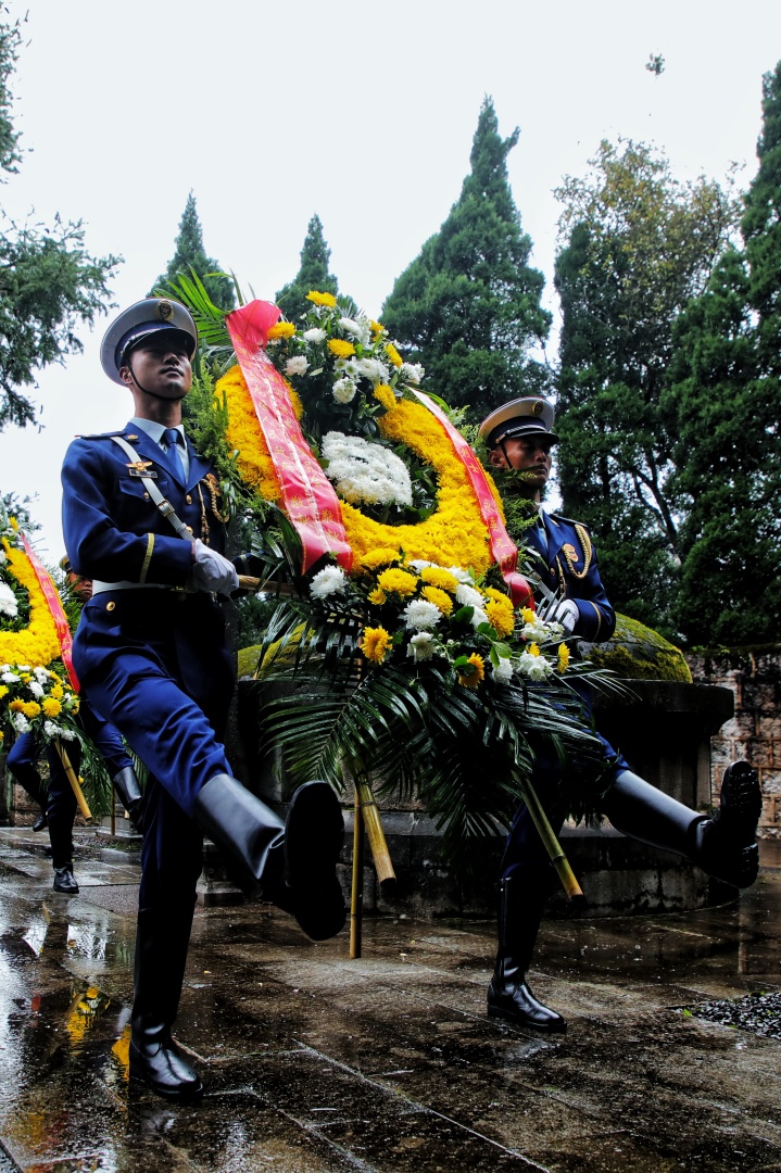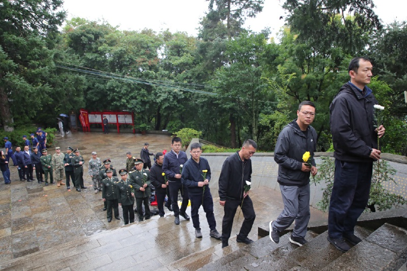 随后,全体人员脱帽垂首,向为民族解放事业、国家建设征程英勇献身的革命英烈默哀。默哀结束后,全体人员手持象征着高洁与怀念的菊花,依次缓步前行,神情庄重地将鲜花轻置于烈士墓前。