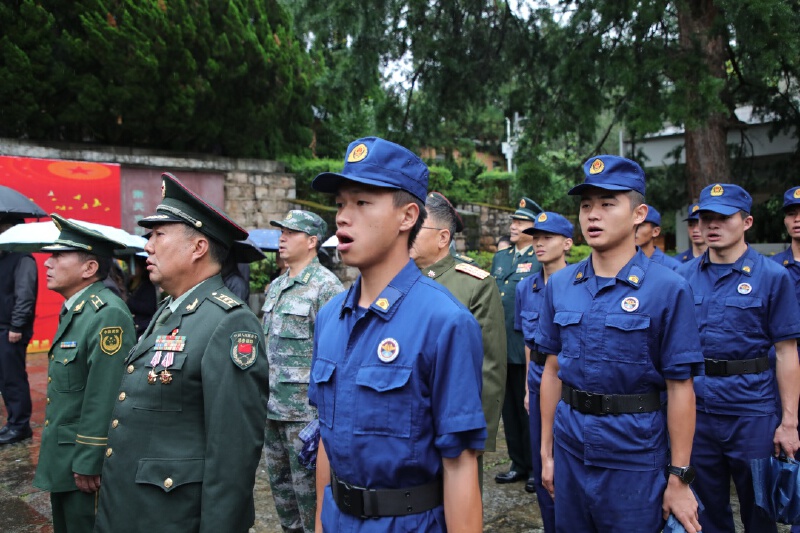当《义勇军进行曲》的雄壮旋律在苍松翠柏间响起,全体人员肃然而立,齐声高唱。歌声落下,盘龙区消防救援大队迈着整齐的步伐,向革命烈士敬献花圈,以无声的敬意,传递对英烈的深切缅怀与无限追思。