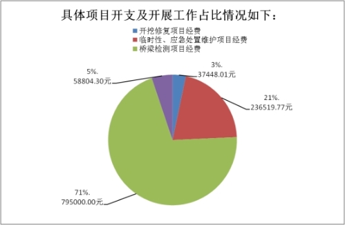 (3)桥梁检测项目经费795000.00元,主要用于:2024年盘龙区桥梁安全检测,顺利完成对东三环方向桥梁、林学院桥、敷润桥等18座桥梁进行专项检测,共支付桥梁安全检测费用795000.00元。