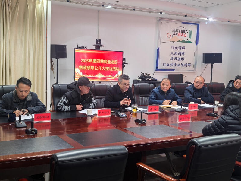 12月25日,盘龙区开展党政领导四季度“公开大接访”活动,区委书记沃磊在行政中心现场接访,与来访群众面对面交流,推动环境保护、水利基础设施修复、绿化修复等相关问题解决。