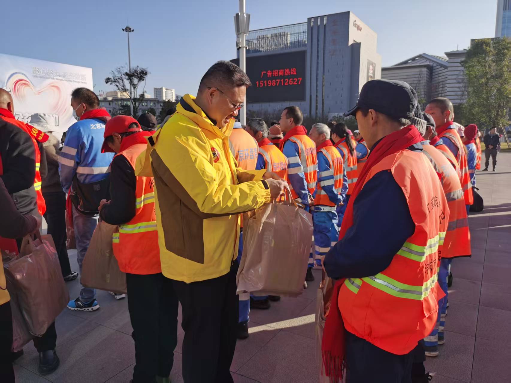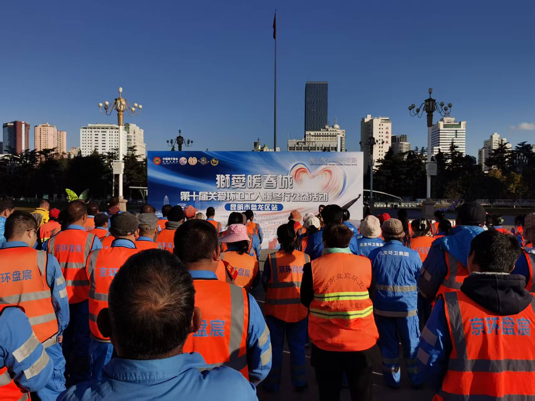 1月16日上午,晨曦初照,一场关爱环卫工人群体的暖冬公益活动在昆明东风广场温情举行。