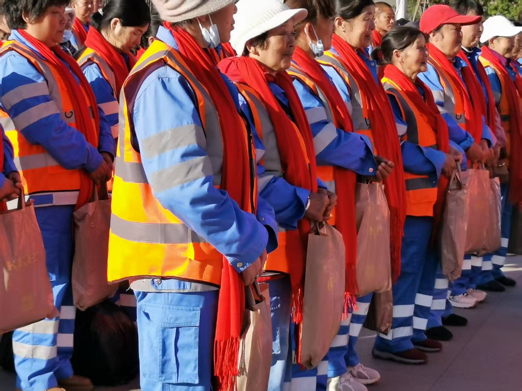 中国狮子联会云南代表处向服务盘龙区的环卫工人赠送价值42800元保暖物资。
