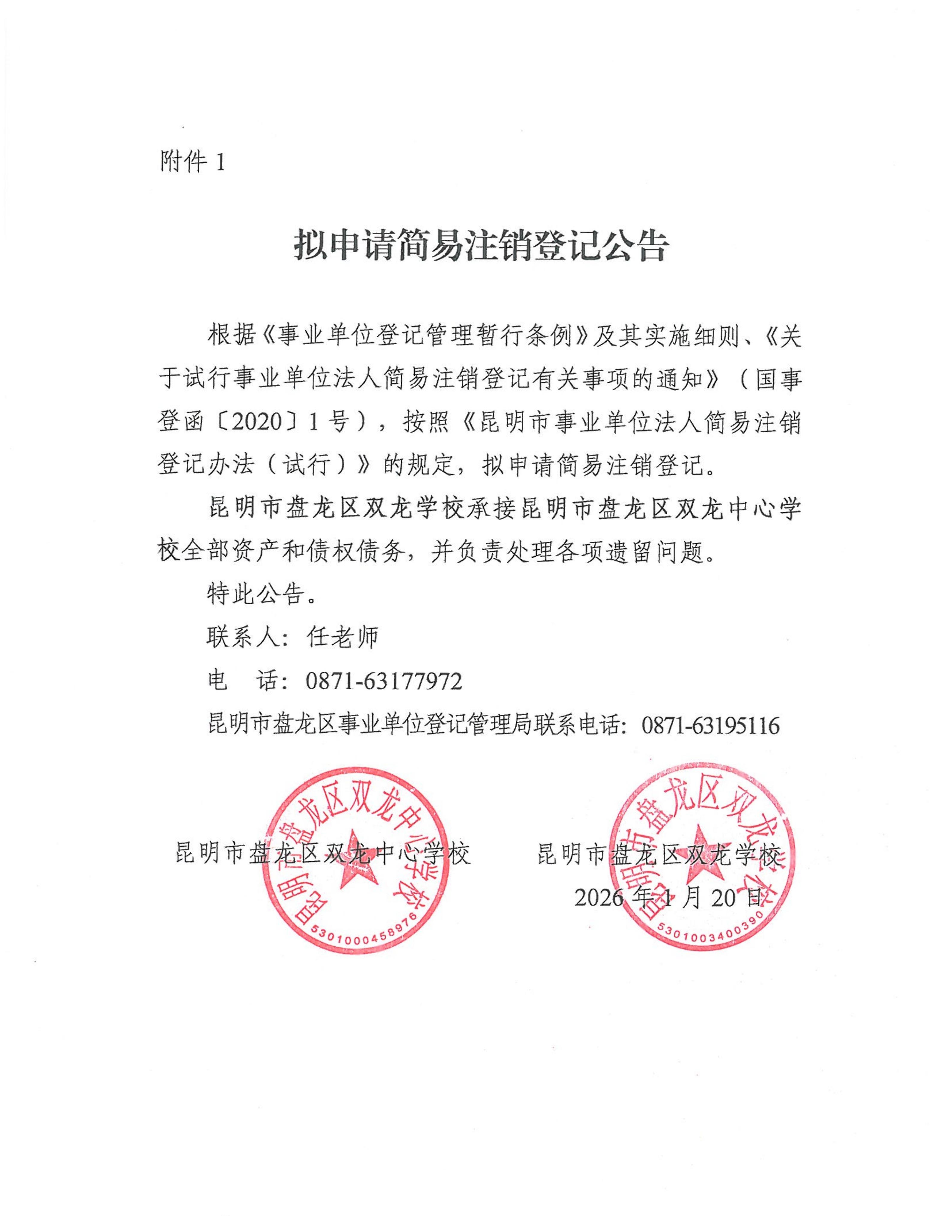 盘龙区教育体育局关于拟申请简易注销登记的公告