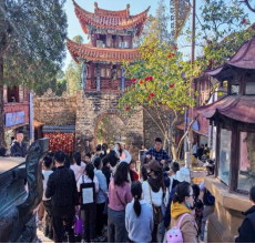 1月24日,来自昆明市各中小学的近40组学生家庭,走进金殿名胜区文物区紫禁城。导师带学生对正在吐蕊的古树山茶、400余岁的紫薇树、古树栓皮栎和古树云南油杉等进行开花、休眠、长树瘤等不同生长现状和它们所包含的生态群落进行观察,了解他们的病害发现和复壮保护等措施和方法,并引导孩子以多元视角去记录古树生长与保护的细节,指导他们完成了属于自己的古树观察笔记。