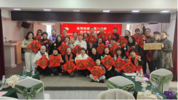 活动开场,盘龙区台侨办领导致欢迎辞,向台胞台属及全体嘉宾送上诚挚问候。随后,桃源社区艺术团的开场舞蹈《快乐的春天》点燃全场,台胞台属们自发登台,献上歌曲、舞蹈等精彩节目,尤其是10岁小台胞带来的舞蹈《库里之歌》和《科目三》,引发全场共鸣,掌声不断。节目《口技》将活动推向高潮,大家积极参加之余,品尝腊八粥、腊八糕,在轻松愉悦的互动中拉近彼此距离,欢声笑语萦绕现场。资深绳结编织大师、在昆台胞林淑丽带领大家制作非遗宋锦,指尖翻飞间凝结美好祝愿;盘龙区台联理事、书法达人王奕更现场挥毫泼墨,将一幅幅饱含祝福的“福”字赠予现场嘉宾,在墨香中传递中华文脉传承。最后,活动在大合影的快门声中圆满落幕,定格下团圆与欢笑的珍贵瞬间。