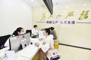 企业和群众在升级改造后的联盟街道便民服务大厅办理业务。 记者王俊星摄
