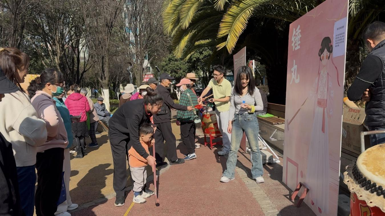 趣味游戏区同样热闹非凡,套圈、幸运大转盘、蒙眼敲锣、猜灯谜、夹乒乓球、投壶纳福等项目依次排开。老人们或组队协作,或两两比拼,在游戏中重温往昔岁月,现场欢笑声、喝彩声此起彼伏。大家在轻松愉悦的互动中,不仅收获了精美的小礼品,更增进了邻里之间的情谊。