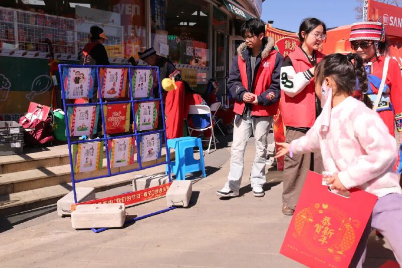 非遗民俗体验与趣味游园活动,成为现场最具人气的打卡地,写送春联、剪纸等非遗体验,猜灯谜、“跳格倡新风”等移风易俗游园项目,吸引了众多居民驻足参与,大家在互动中尽享新春乐趣。辖区退休居民谭女士刚完成社会主义核心价值观猜词挑战,手中已集齐三个游园徽章,她表示:“社会主义核心价值观的内容我以前在单位熟记过,挑战起来很轻松,整个游园集章过程非常有趣。”同时,书法爱好者挥毫泼墨,一副副红色的春联承载着新春祝福被送到居民手中,70岁的徐女士刚结束表演,身着彝族服饰捧着“福”字笑意盈盈:“今天不光玩得开心,还在游戏里学会了垃圾分类的具体方法,平安过年的知识也特别实用。”