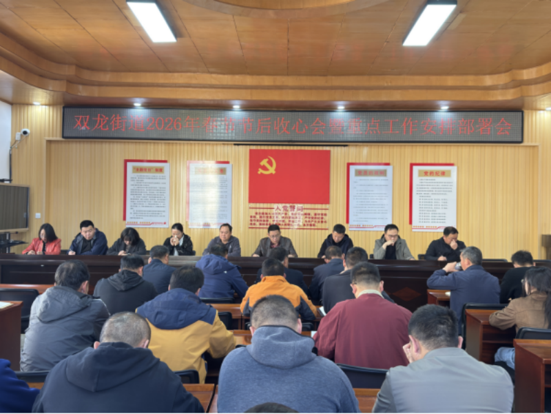 2月24日,春节假期后的第一个工作日,双龙街道召开2026年春节节后收心会暨重点工作安排会,旨在迅速调整全体干部职工精神状态,明确下一步工作重点,进一步收心提神、凝心聚力、提振士气,确保各项工作尽早取得新战果、实现首季“开门红”。街道班子成员、各社区党组织书记和机关全体干部职工参加会议。