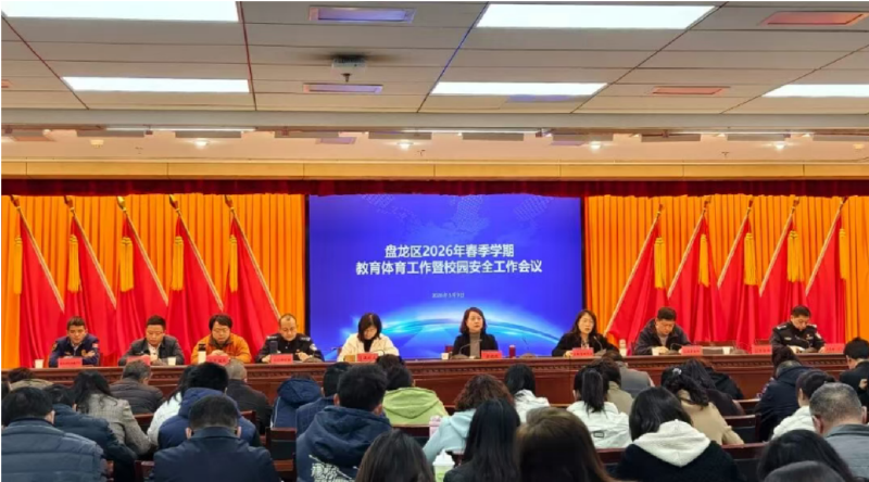 为深入贯彻党的二十大和二十届历次全会精神,全面落实习近平总书记关于教育的重要论述,对标上级教育工作会议部署及区委、区政府工作要求,谋划教育体育高质量发展、筑牢校园安全防线,3月9日下午,盘龙区召开2026年全区教育体育工作暨校园安全工作会议。区政府副区长蒋晓庆出席会议并讲话;区委网信办、区公安分局、区卫生健康局、区市场监管局、盘龙消防大队、市道路交通二大队相关负责人,以及全区公民办中小学、幼儿园、区教育体育局下属事业单位主要负责人参会。