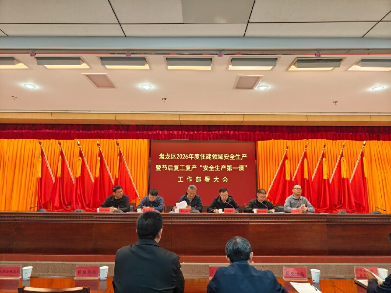 为切实筑牢全区住建领域工程质量安全防线,强化文明施工管理,拧紧燃气行业安全生产“安全阀”,3月28日上午,盘龙区2026年度住建领域安全生产暨节后复工复产“安全生产第一课”工作部署会议在区行政中心召开。全区各有关部委办局、十二个街道办事处、各相关企业负责人参加会议。