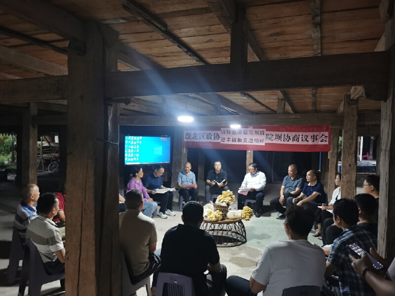 竹影婆娑,傣韵悠扬。4月21日晚,磨憨镇尚冈村一座傣家吊脚楼下,一张桌子摆满了新鲜、烘干的菌菇,吸引着人们拍照。村“两委”成员、试种菌菇村民代表、政协委员、磨憨镇有关工作人员、盘龙区驻村工作队队员等20余人围坐一堂,围绕“议特色菌菇发展路,建幸福和美边境村”主题进行协商议事,过往村民也驻足、插话,现场气氛热烈,民情民意充分汇聚。