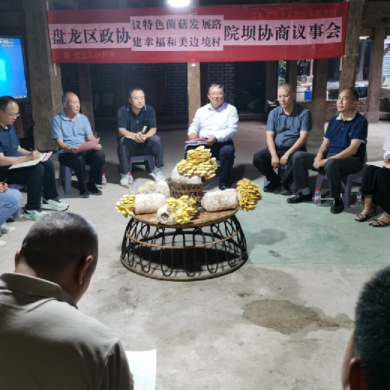 这是盘龙区政协在傣家吊脚楼下开展院坝协商的一幕。盘龙区政协紧扣党政所需、群众所盼,在2025年开展“边疆农文旅融合发展,助推幸福边境村寨建设”院坝协商及试种菌菇成功的基础上,围绕特色菌菇种植和探索边寨产业发展再次组织召开协商议事会,以助力尚冈乡村振兴、产业发展。会前,调研组开展了商前调研,实地察看了解尚冈小组菌菇试种、磨歇闲置房屋产业发展项目、茶场橡胶林地产业规划用地等情况,广泛听取尚冈村“两委”、试种户、驻村工作队等方面意见建议,分析菌菇推广种植存在的主要困难和问题。